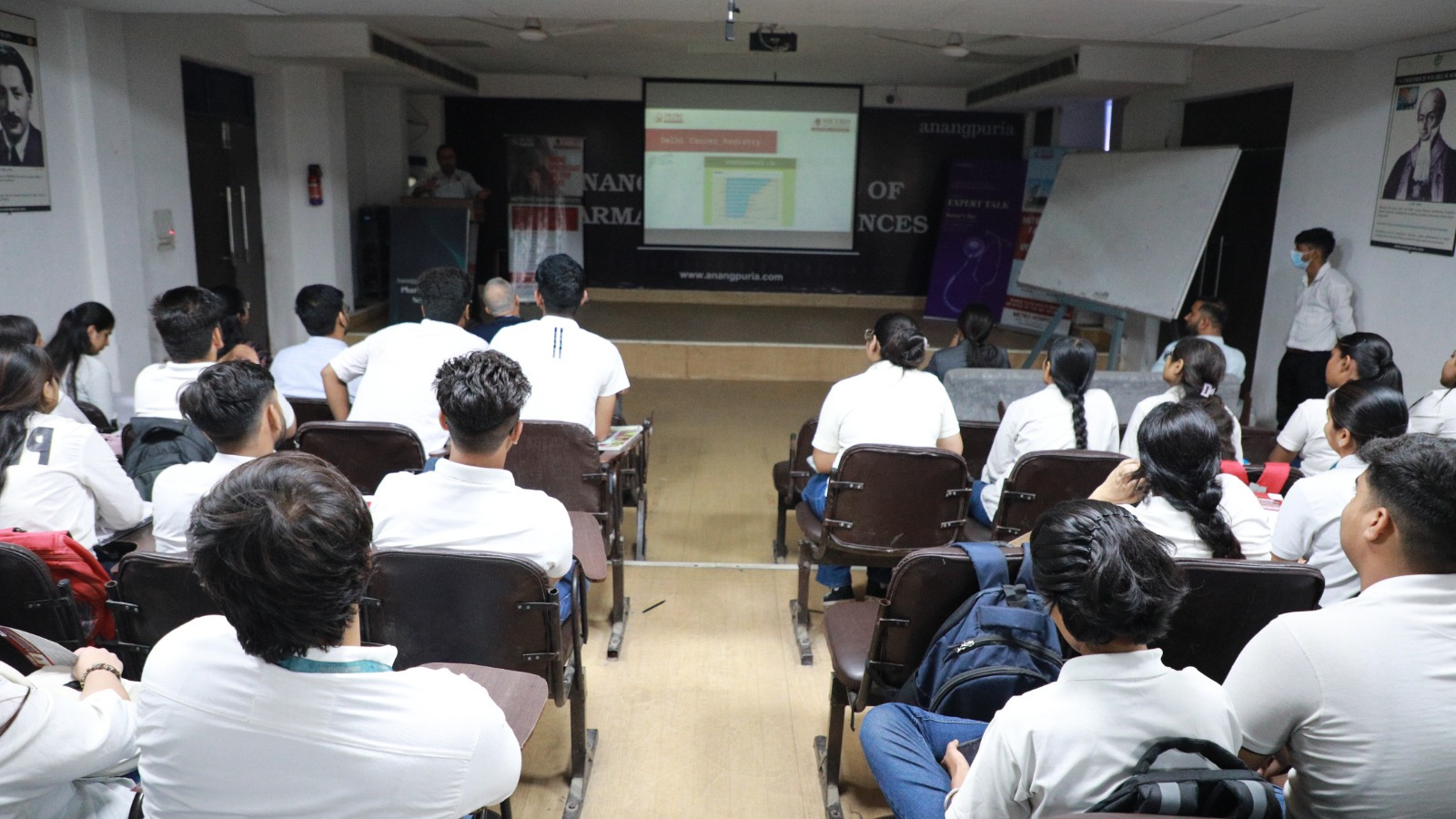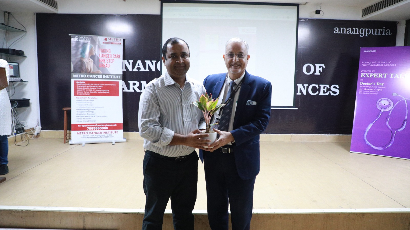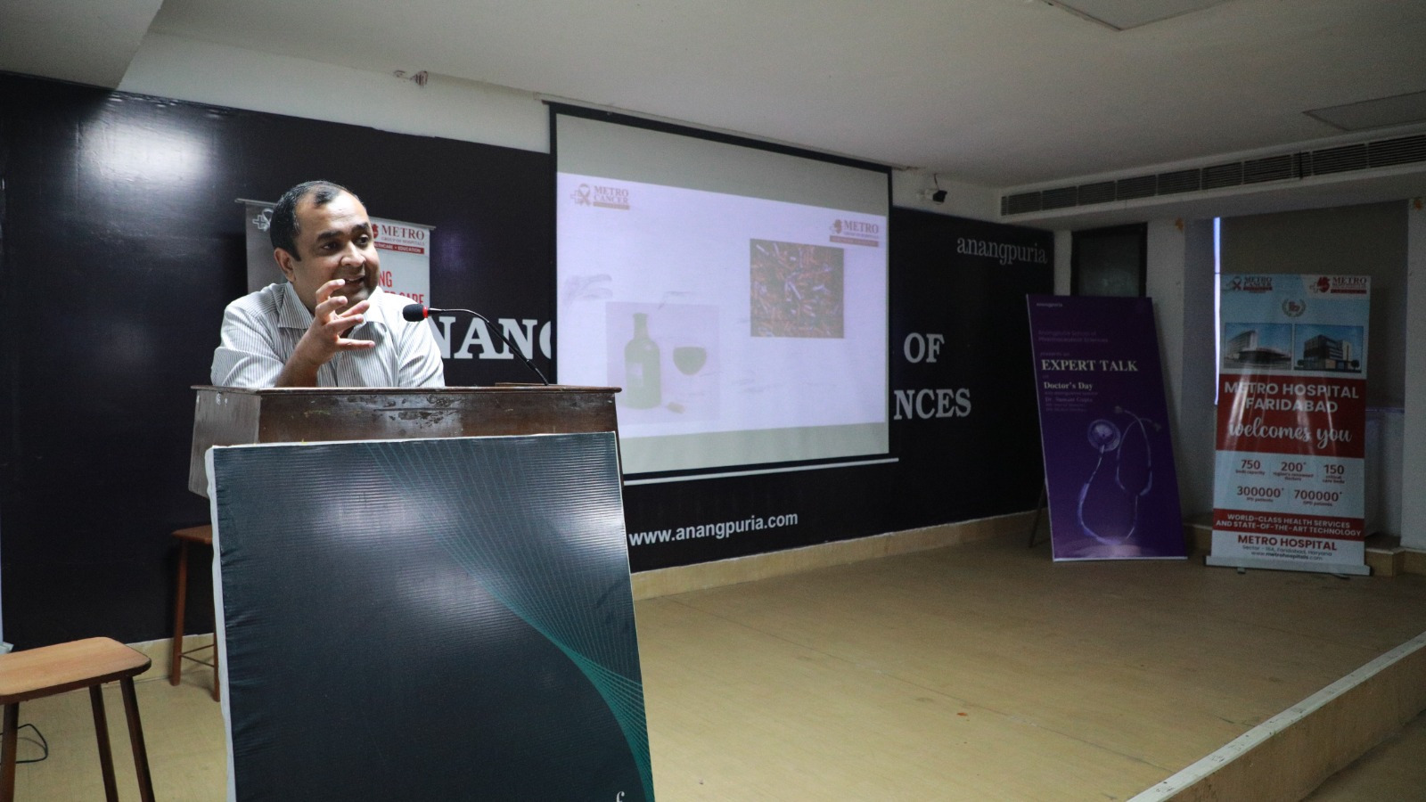 On the occasion of Doctors’ Day, Anangpuria School of Pharmaceutical Sciences (ASPS) organized a special session to honor the invaluable contribution of doctors to society. To mark the day, Dr. Sumanth Gupta, Head of the Cancer Department, Metro Hospital, Faridabad, was invited to deliver an expert talk on Cancer Awareness for the students of B. Pharmacy 7th semester. Dr. Gupta shared deep insights on the causes, early detection, prevention, and modern treatment approaches for cancer, while also emphasizing the importance of lifestyle modifications and awareness in reducing cancer risks. The session proved to be highly informative and interactive, encouraging students to understand their future role as pharmacists in supporting cancer care and patient counseling. The event not only celebrated the spirit of Doctors’ Day but also inspired students to contribute meaningfully to healthcare and society.